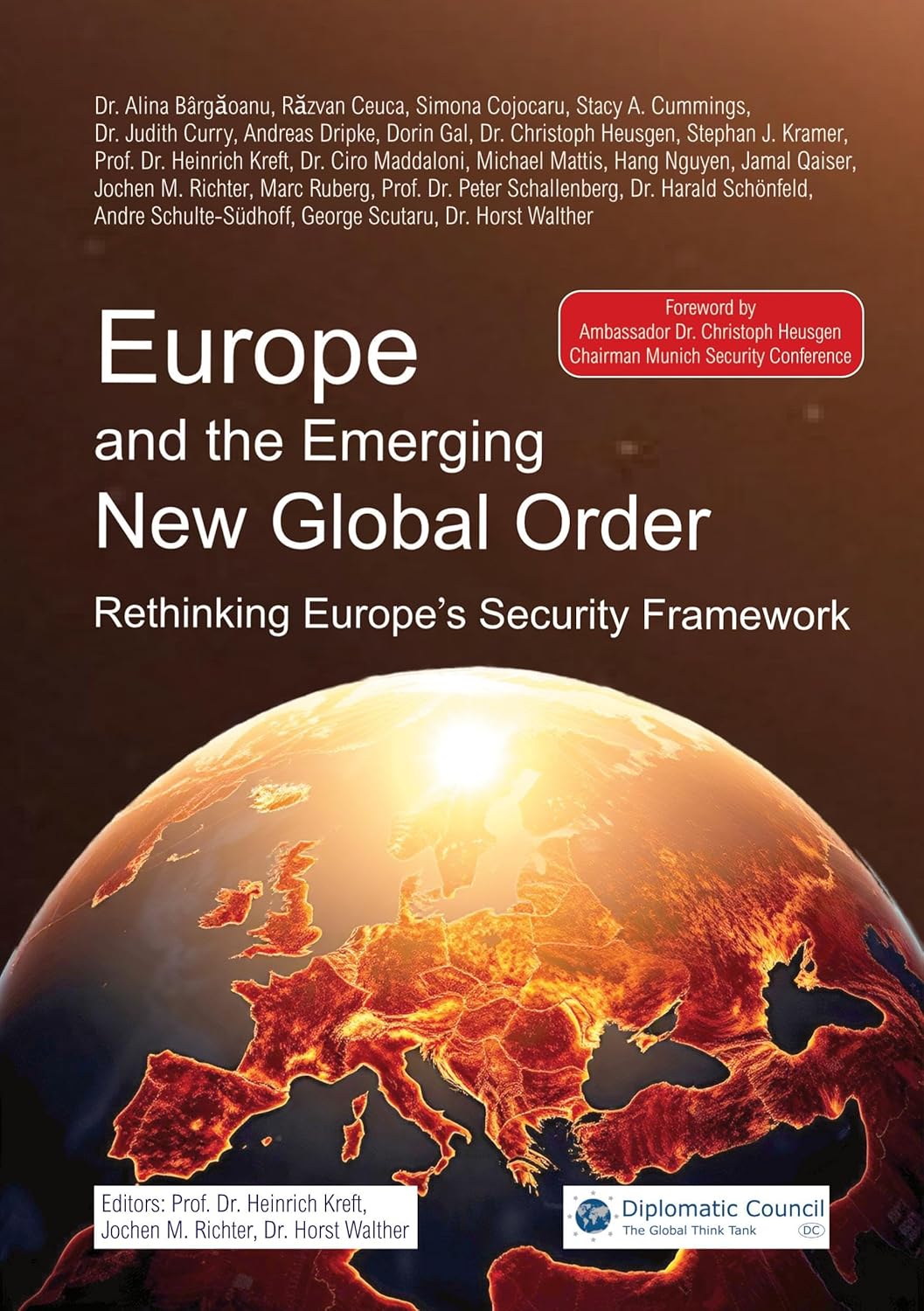 Bringing together twenty-one experts, the volume argues for a proactive, confident, and resilient Europe and offers concrete proposals across defense, cyber resilience, climate risk, and the protection of vital systems. Contributors include Ambassador Dr. Christoph Heusgen (Chair, Munich Security Conference), Ambassador Prof. Dr. Heinrich Kreft (President, Diplomatic Council), Dr. Horst Walther (CEO, SIG; Diplomatic Council Commissioner for UN Affairs), and Jochen M. Richter (Chair, Diplomatic Council Global Security Forum), among others. The book is published in English by Diplomatic Council e.V.; the paperback runs 526 pages and carries ISBN- 978-3986741358, with publication dated 9 January 2025.