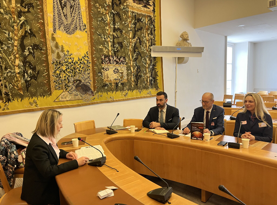 The Diplomatic Council delegation had the privilege of presentingthe French edition of Europe and the Emerging New Global Order: Rethinking Europe’s Security Framework at the French Senate to Mme Hélène Conway-Mouret, Senator for French citizens abroad and Vice-President of the Committee on Foreign Affairs, Defense and the Armed Forces.